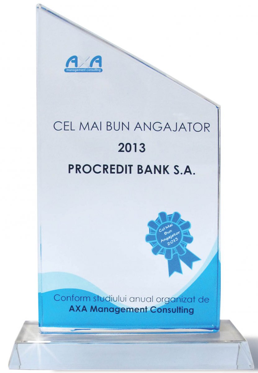 ProCredit Bank - банк, ориентированный на развитие – в третий раз подтверждает свое звание одного из лучших работодателей Молдовы, попадая в 10-ку лучших компаний, по результатам исследования, проведенного компанией Axa Management Consulting.